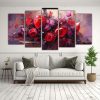 Pintura En Lienzo De Flores Moradas Y Rojas: Cinco Cuadros Modernos De Intensidad En La Decoración.