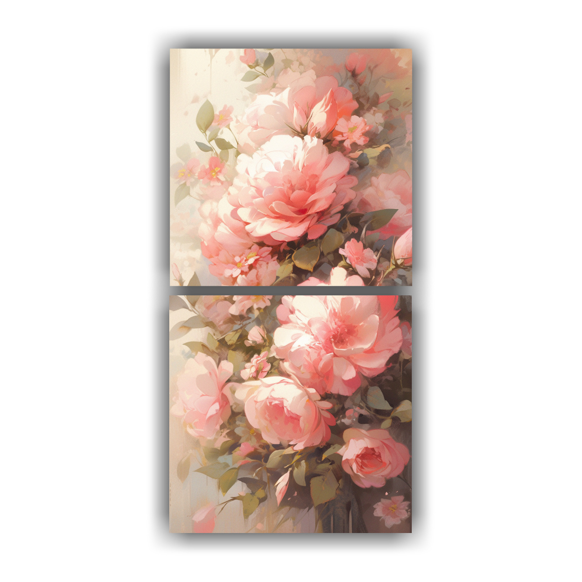 Pintura En Lienzo De Flores Rosadas Estrelladas En El Estilo De Dos Cuadros Fotografía