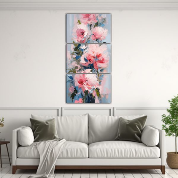 Añade un toque de elegancia a tu hogar con este cuadro floral en tonos rosas y azules Combina perfectamente en salas, dormitorios o espacios de relajación La mejor opción para dar vida a tus paredes de forma sofisticada