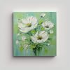 Pintura En Lienzo De Flores Verdes Y Blancas Sobre Bastidor Para Decoración De Baño