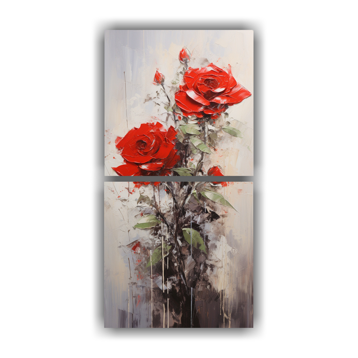 Pintura En Lienzo De Forma Fantasia Con Rosas Rojas En El Estilo De Re