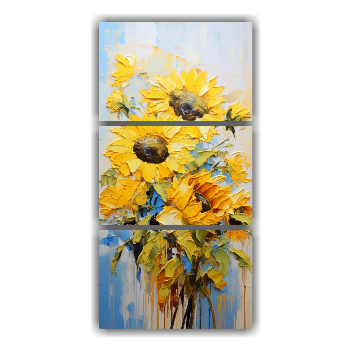 DecoCuadros tiene para ofrecerte un tríptico de colores naturaleza viva con un hermoso cuadro de girasoles amarillos en lienzo Nuestros cuadros decorativos impresos en tela de alta calidad con bastidores de madera, son la opción perfecta para darle un toque especial a tus espacios Con colores como el mostaza, plateado, azul marino grisáceo, coral, chocolate, menta, gris y turquesa, este cuadro se adaptará a cualquier estilo de decoración Nuestros diseños exclusivos y la mejor calidad del mercado nos destacan, y además ofrecemos los precios más económicos Realizamos entregas gratis y rápidas en Santiago, y envíos express a regiones No pierdas la oportunidad de adquirir este hermoso cuadro y darle vida a tu hogar