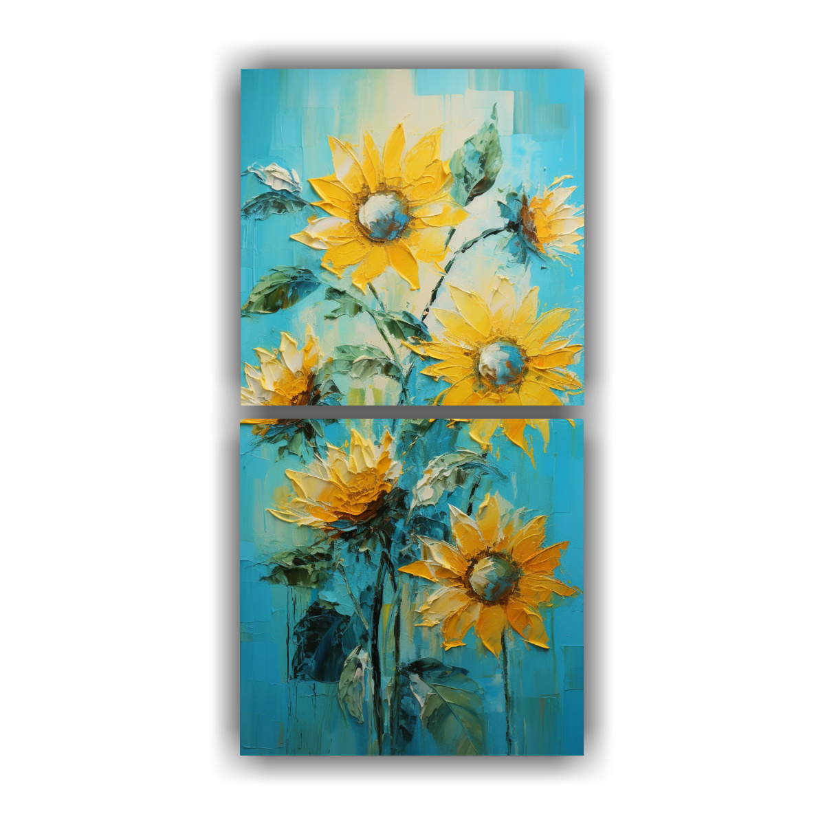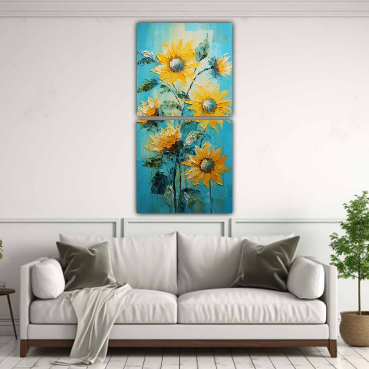 Pintura En Lienzo De Girasoles Turquesa En La Decoración