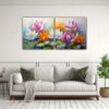 Este cuadro de loto en colores vibrantes es perfecto para agregar un toque de elegancia y color a tu sala de estar Colócalo sobre un sofá de tonos neutros para crear un contraste llamativo También puedes combinarlo con cojines en tonos similares para lograr una armonía en la decoración de tu espacio ¡Atrévete a darle vida a tus paredes con este hermoso cuadro de DecoCuadros!