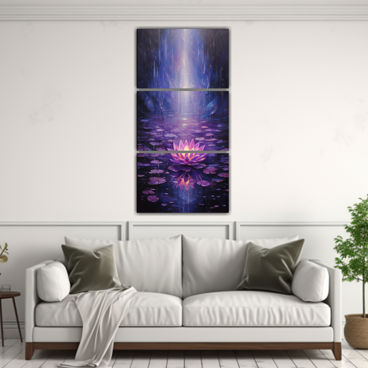 Este cuadro de loto negro brillante sería ideal para colocar en un salón moderno junto a muebles de tonos neutros y detalles en tonos coral para crear un contraste sofisticado ¡Destaca tu pared con esta pieza única!
