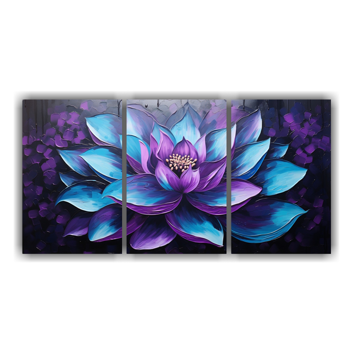 El cuadro de loto negro mágico estilo artesanal es perfecto para darle un toque de sofisticación a cualquier ambiente Sus colores turquesa, azul marino grisaceo, lila, gris y violeta crean una atmósfera mística y relajante DecoCuadros ofrece la mejor calidad del mercado a precios económicos