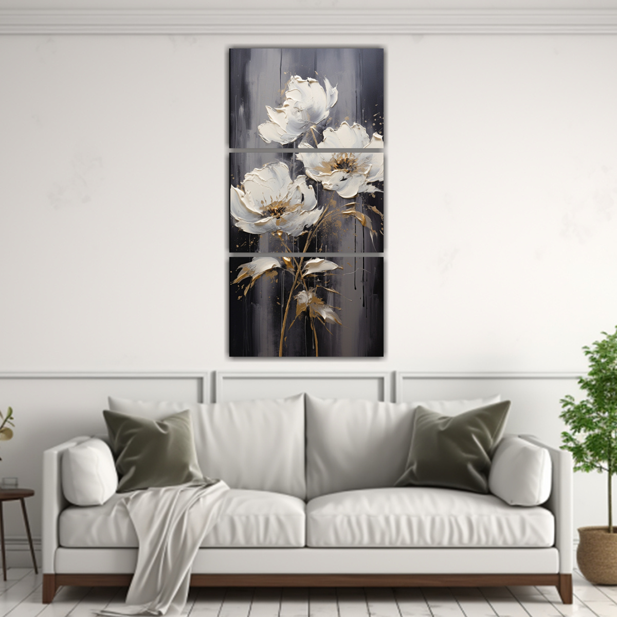 Coloca este cuadro en la sala de estar sobre un sofá gris oscuro para resaltar los tonos Plateado y Gris Combínalo con cojines en tonos Coral y Carmesí para crear un ambiente acogedor y sofisticado