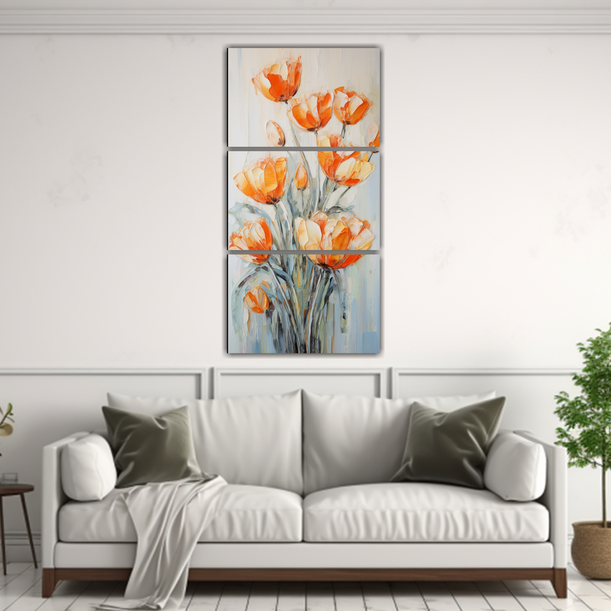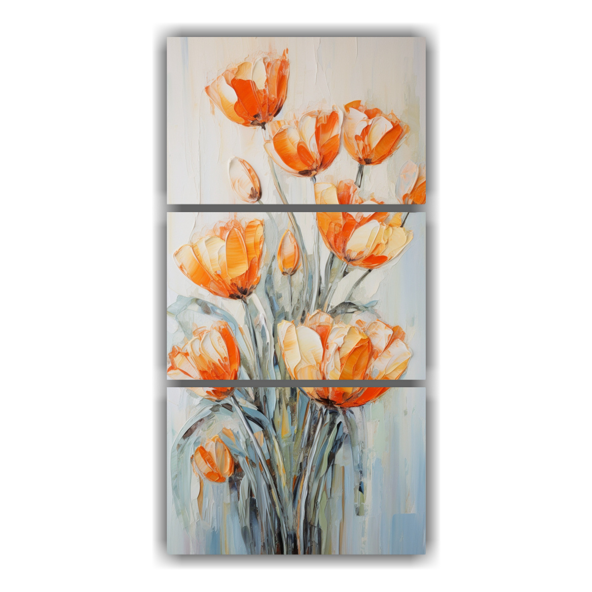 Pintura En Lienzo De Tres Composiciones Decorativas Exuberantes Con Tulipanes Naranjas