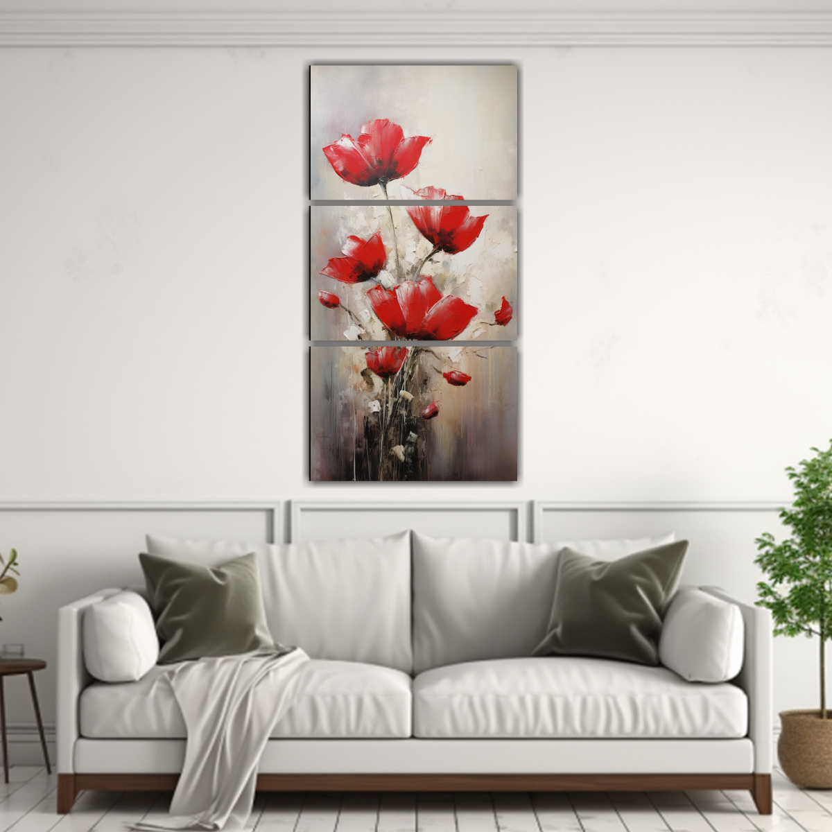 Pintura En Lienzo De Tulipanes Rojos En Estilo Abstracto