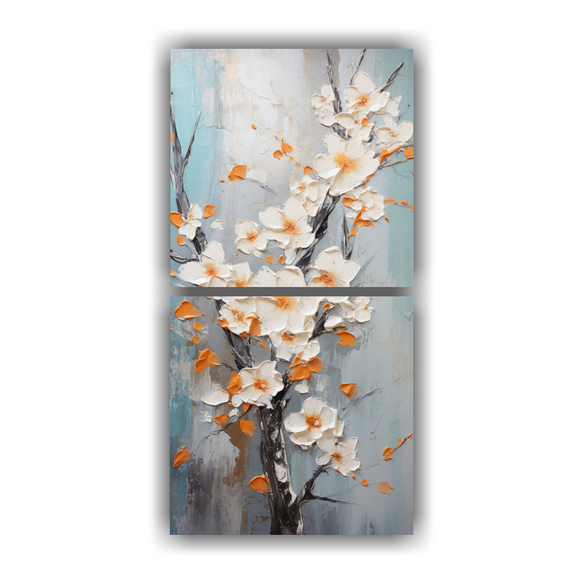 DecoCuadros ofrece cuadro Enigmático en naranja con flores de cerezo en composiciones creativas Calidad y precios económicos, entregas rápidas y gratuitas en Santiago