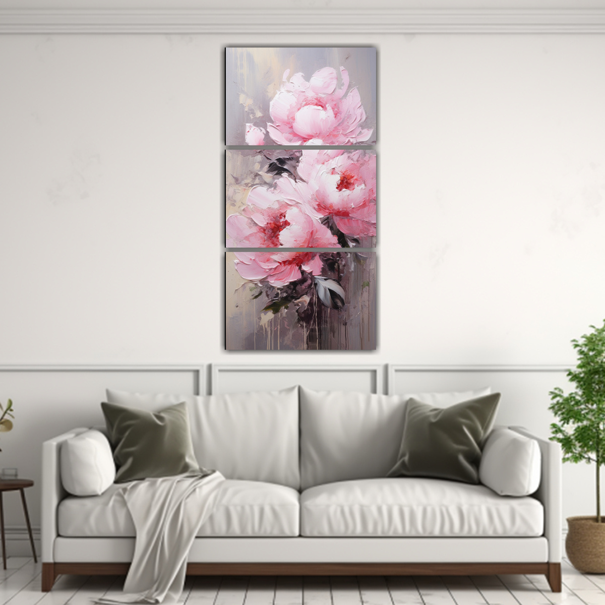Este cuadro sería perfecto para decorar tu sala de estar Colócalo sobre un mueble en tonos neutros como gris o beige, para resaltar los colores vibrantes de las peonías Combínalo con cojines y cortinas en tonos rosas y dorados para crear una atmósfera elegante y sofisticada