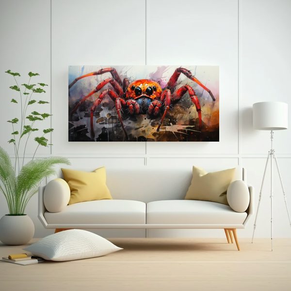 Pintura En Lienzo Estilo Acuarela Araña Colorida Originalidad En Líneas Finas