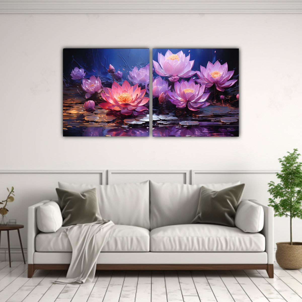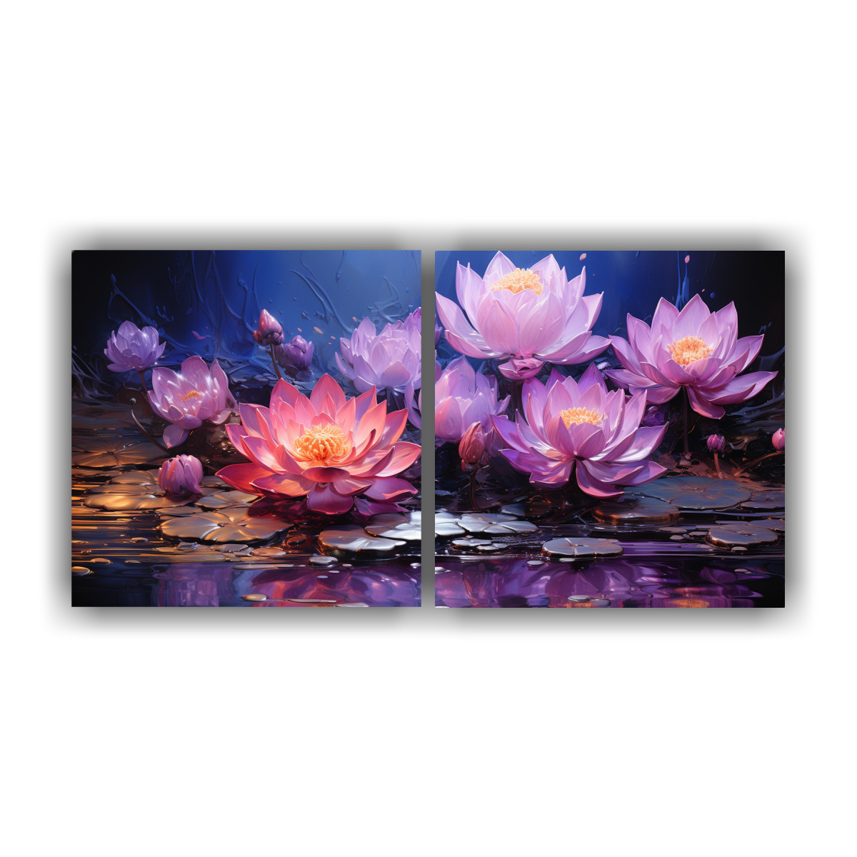 DecoCuadros te ofrece una pintura en lienzo estilo artsy de loto negro mágico en Set 2 Artes Decorativo Artesanal Con colores lila, azul marino grisaceo, dorado, violeta, gris, coral y carmesí, nuestros cuadros decorativos impresos en tela de alta calidad con bastidores de madera son perfectos para añadir un toque mágico y sofisticado a cualquier espacio de tu hogar u oficina Nuestros diseños exclusivos combinan elegancia y originalidad, y ofrecemos los precios más bajos del mercado, así como envío gratuito en Santiago y envíos express a regiones