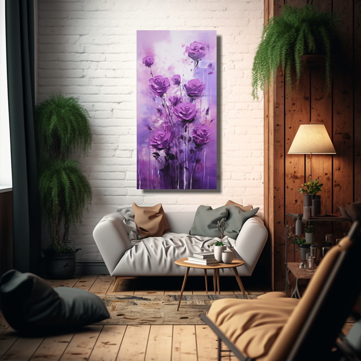 Este cuadro es perfecto para decorar tu sala de estar Colócalo sobre un sofá de tonos neutros para resaltar su intensidad Complementa la decoración con cojines en tonos lila y dorado para crear un ambiente elegante y sofisticado