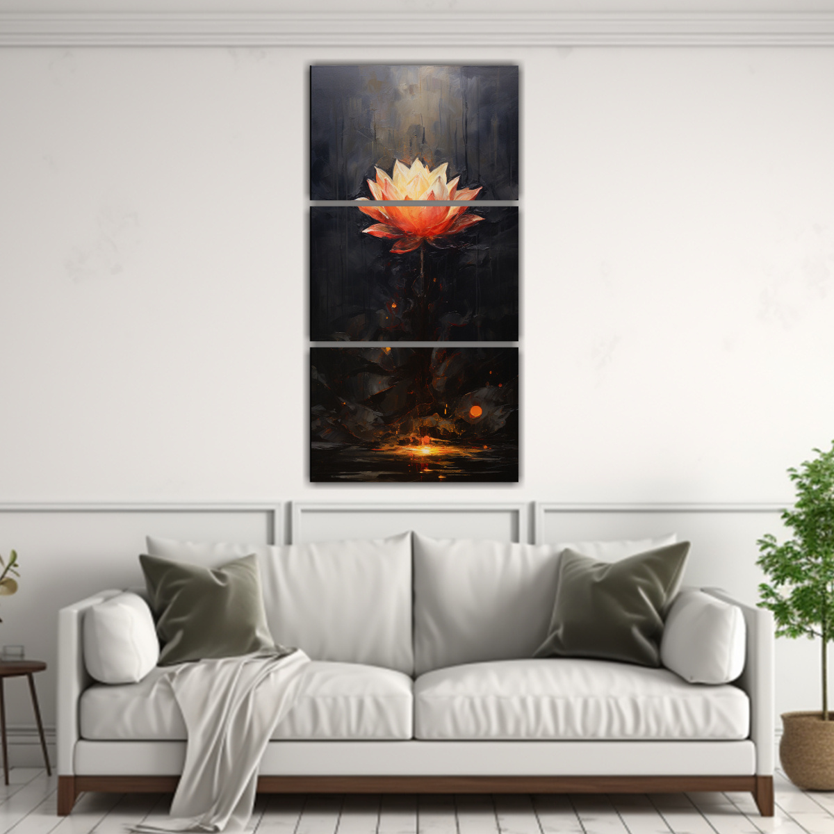 Este set de 3 lienzos en estilo Culturar de loto negro quedará perfecto en tu sala de estar, sobre el sofá o en la pared principal Combínalo con muebles en tonos neutros como beige o gris y accesorios dorados para crear un ambiente sofisticado y elegante