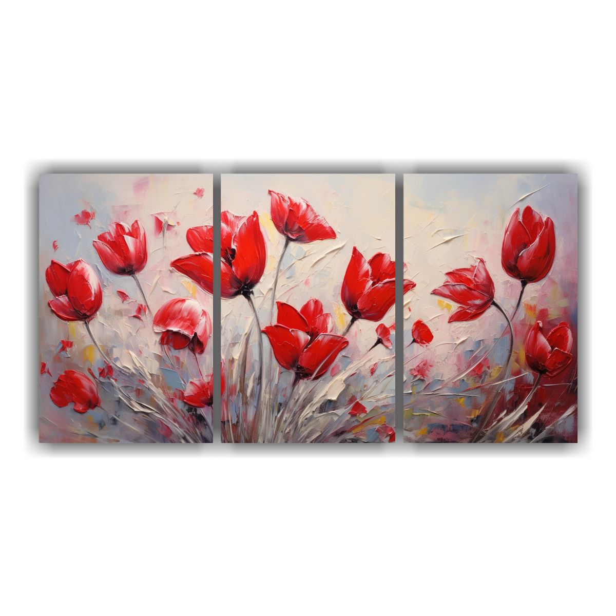 Pintura En Lienzo Estilo De Tríptico Elegante Con Tulipanes Rojos
