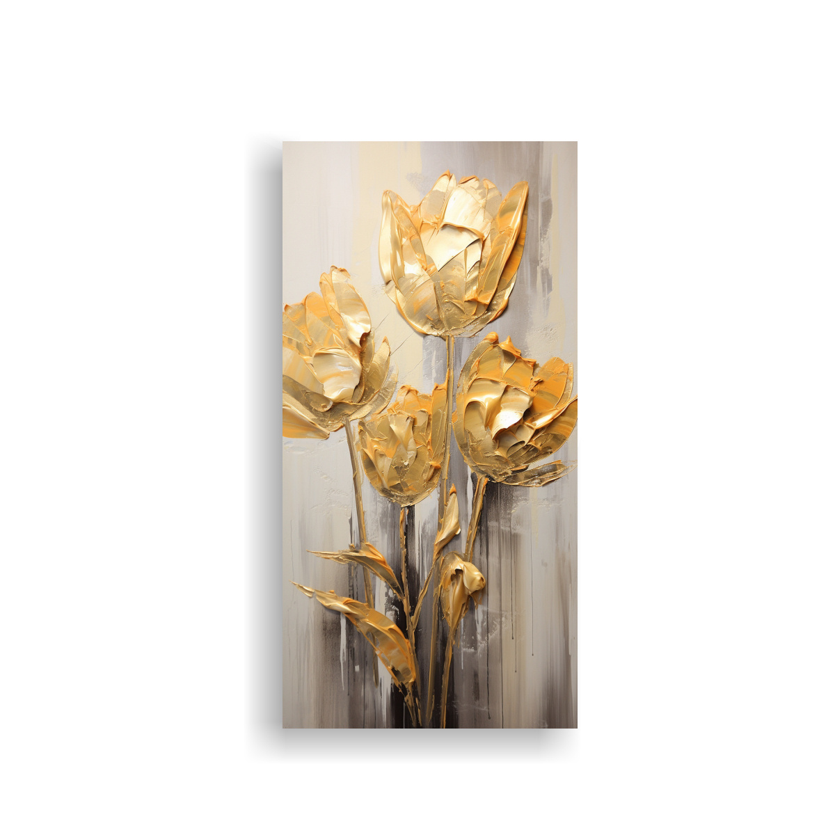 Pintura En Lienzo Estilo Decorativo De Dormitorio Con Tulipanes Dorados En Canva Fotografía