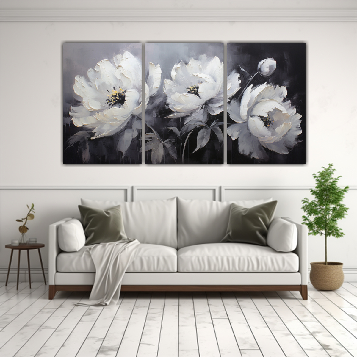 Pintura En Lienzo Estilo Decorativo Peonías Negras época, Set 3 Artes De Pared