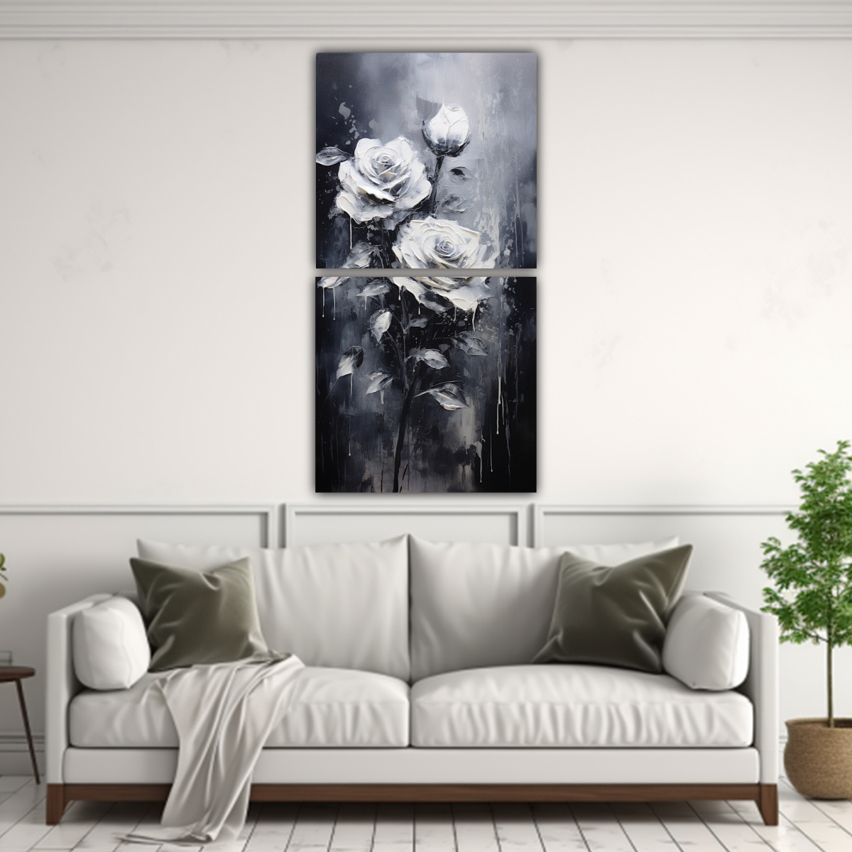 Este cuadro de Calma con rosas negras en lienzo sería perfecto para decorar cualquier espacio que necesite un toque de elegancia y serenidad Colócalo en tu sala de estar o en tu dormitorio para crear un ambiente relajante Combina perfectamente con muebles en tonos neutros y accesorios plateados o grises, creando una atmósfera sofisticada ¡Aprovecha la calidad y precios económicos de DecoCuadros para embellecer tu hogar!