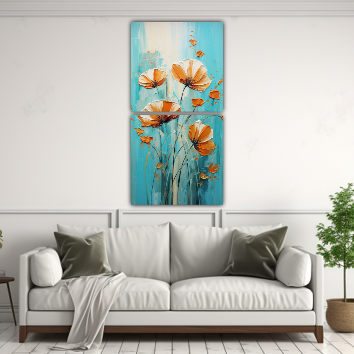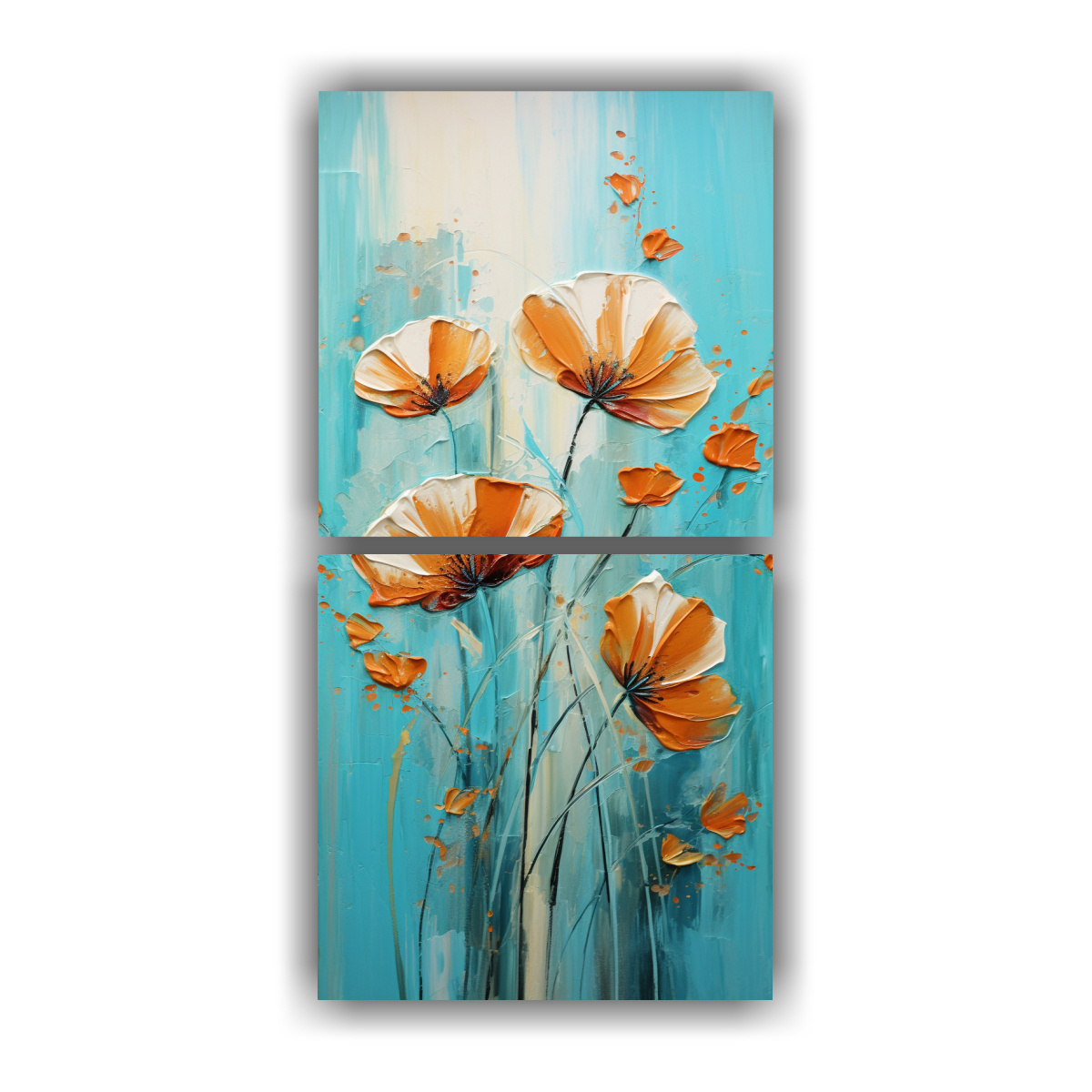 Pintura En Lienzo Estilo Galería: Equilibrio De Colores Turquesa Y Flores.