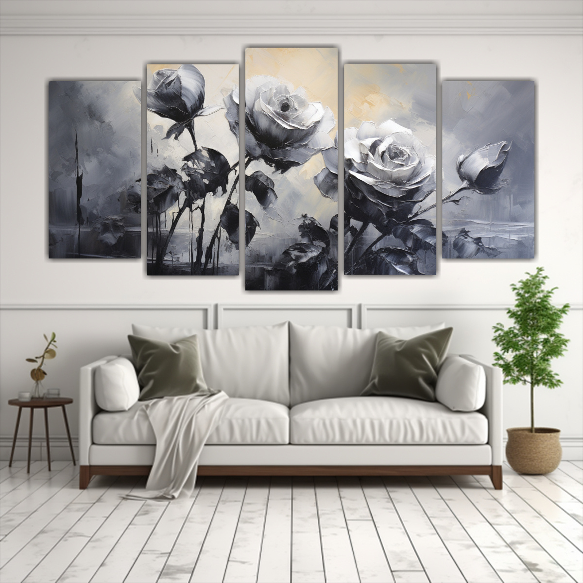Coloca este cuadro en tu sala de estar para crear un ambiente moderno y sofisticado Combínalo con mobiliario en tonos neutros, como blanco y negro, para resaltar aún más la vitalidad de las rosas negras