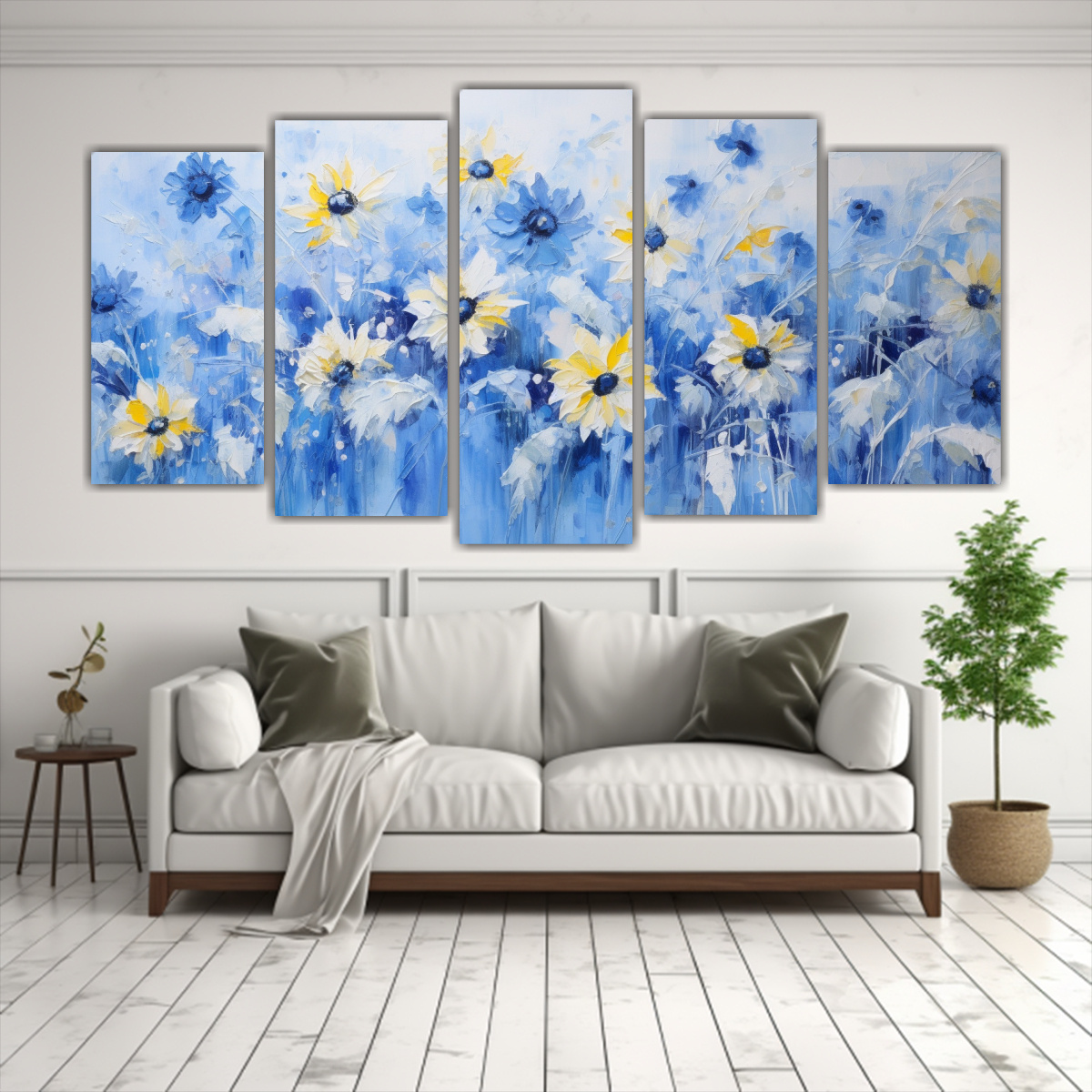 Pintura En Lienzo Estilo Girasoles Azules Para Decoración De Comedor