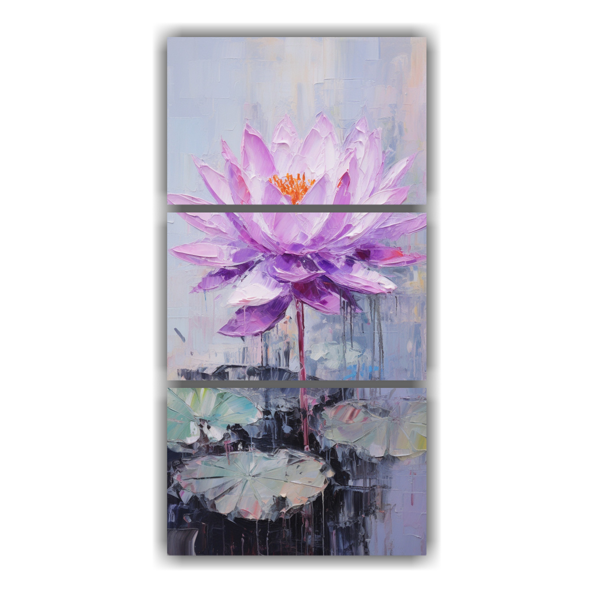 Pintura En Lienzo Estilo Hermoso Contraste De Loto Púrpura.