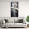 Este cuadro de tulipanes negros se vería espectacular en el salón de tu hogar, justo encima del sofá Su diseño exclusivo y los colores plateado, azul marino grisaceo, gris y dorado le darán un toque elegante y moderno a tu espacio Combínalo con cojines en tonos grises y plateados para lograr una armonía perfecta