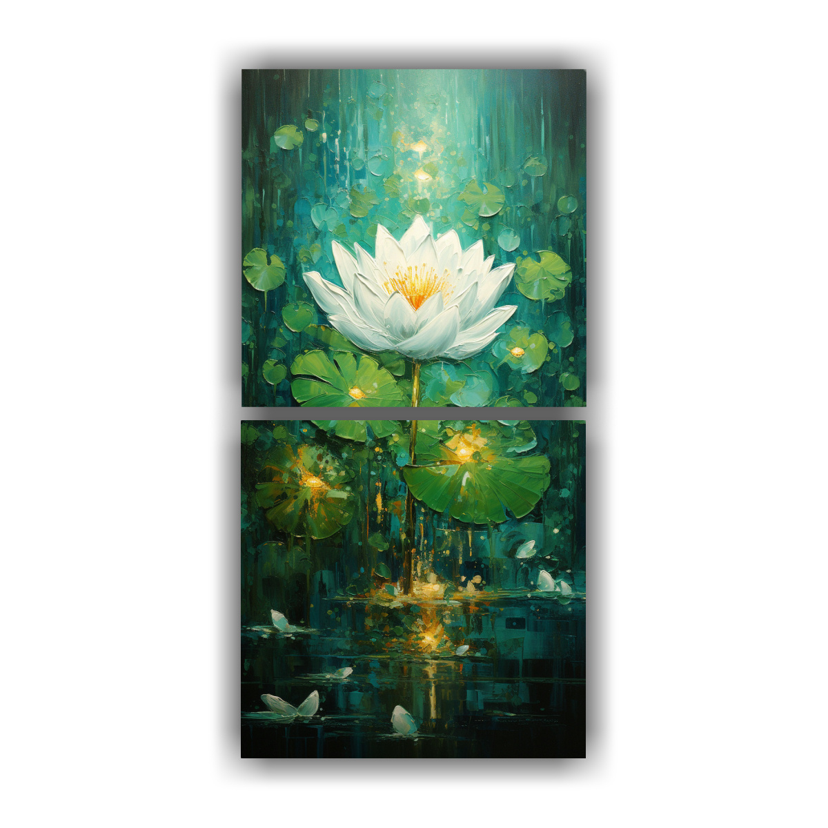 Pintura En Lienzo Estilo Movimiento Estético De Flor De Loto Verde