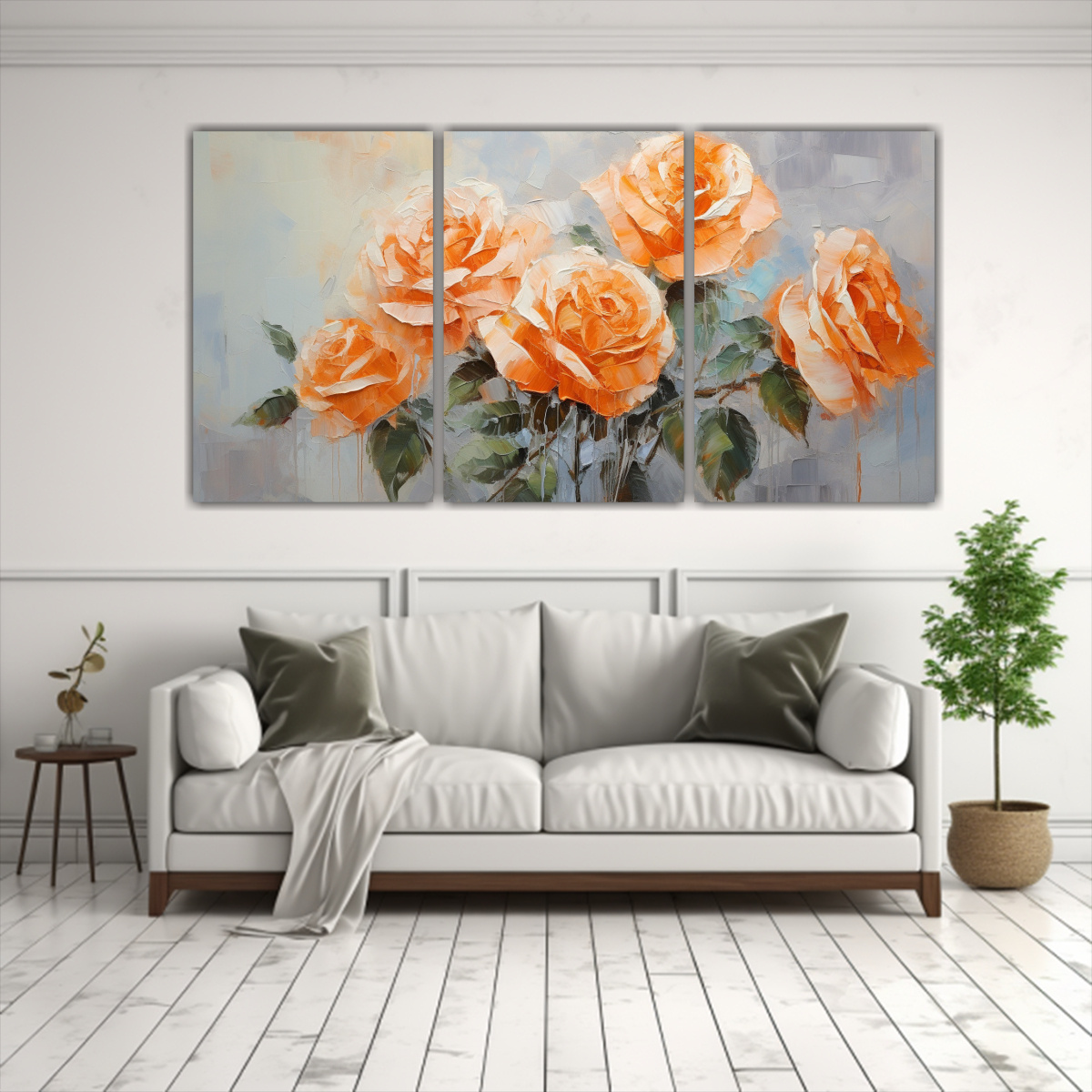 Pintura En Lienzo Estilo Tres Artes De Pared Horizontal Espacio Con Rosas Naranjas