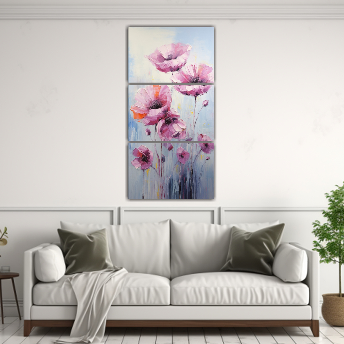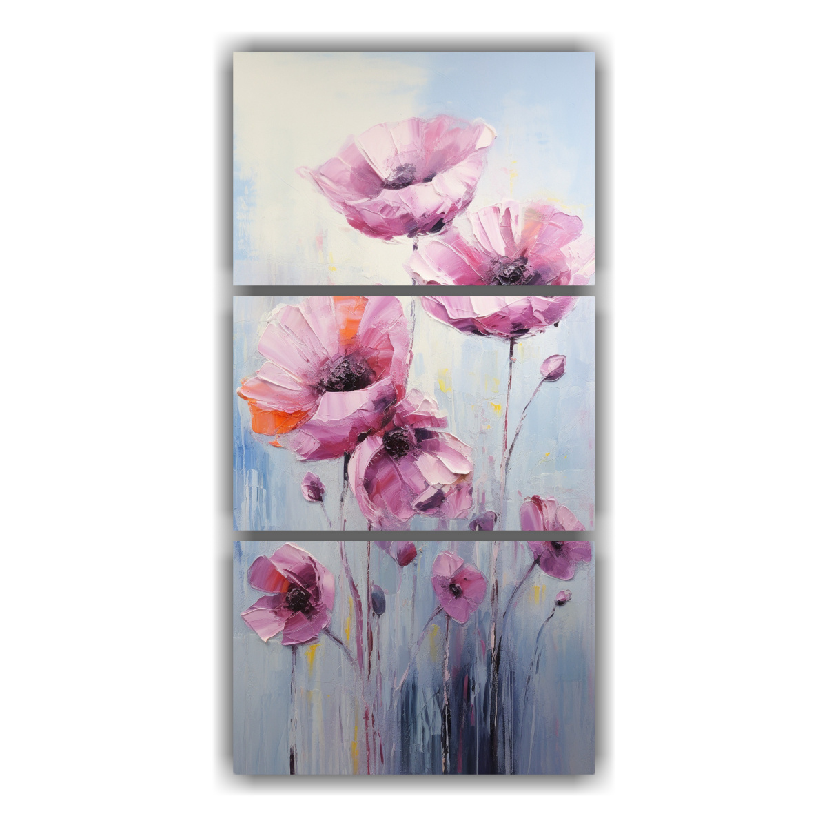 Pintura En Lienzo Estilo Tres Artes Espectacular Simetría A Pink POPPIES