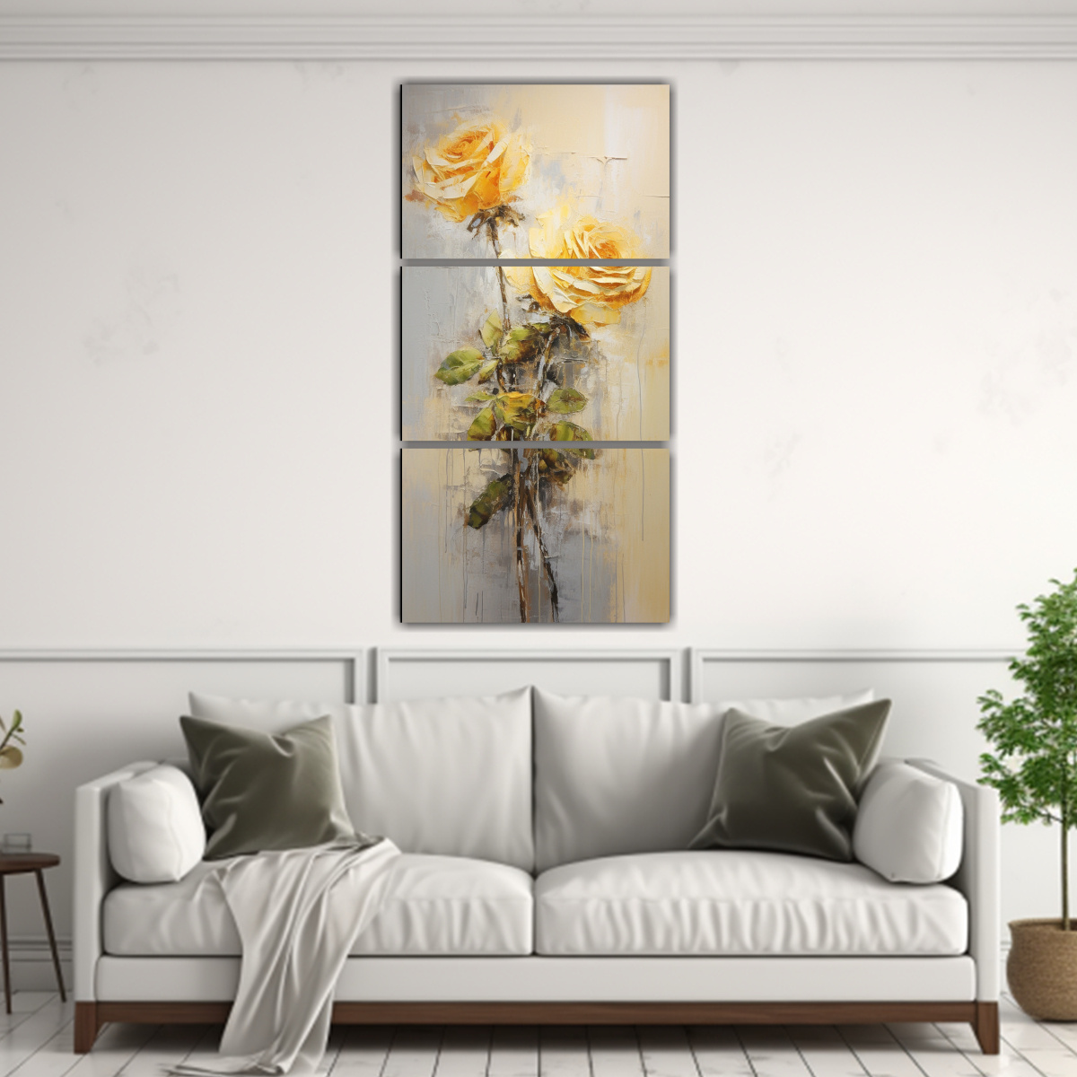 Pintura En Lienzo Estilo Tres Hermosas Rosas Amarillas Intensidad; Arte Decorativo.