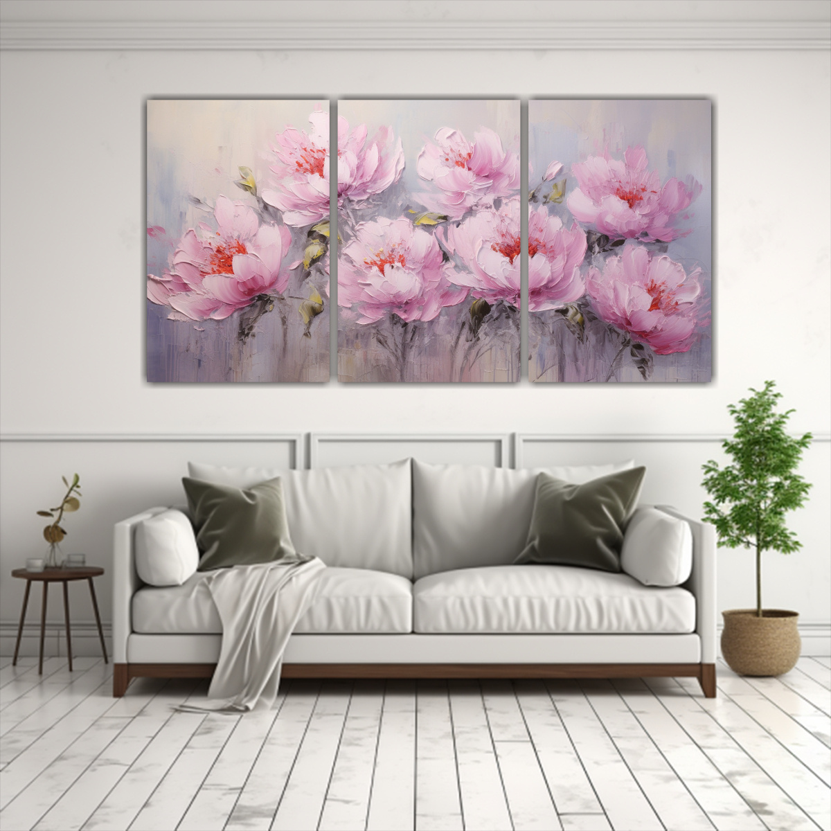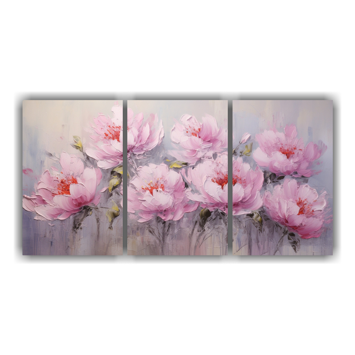 Pintura En Lienzo Estilo Tríptico De PEONÍAS Rosa En Fotografía Originalidad