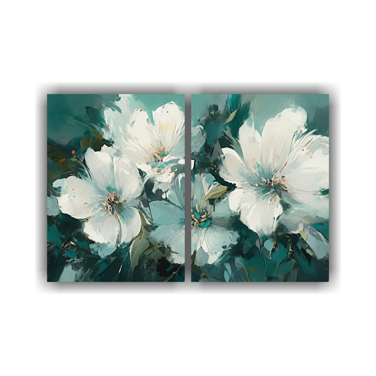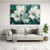 Pintura En Lienzo Flores Blancas Y Azules En Bastidor De Madera