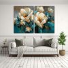 Dos Cuadros Vanguardia Calma A Turquoise AND Gold Colors flowers painting on canvas in Colores: Azul Marino grisaceo, Plateado, Gris, Turquesa, Menta, Negro, Coral, Carmesí Aprovecha la mejor calidad y los precios más económicos del mercado Envío gratis en Santiago y envíos express a regiones