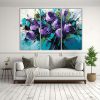 Pintura En Lienzo: Flores Moradas Y Turquesas Con Detalles Intrincados