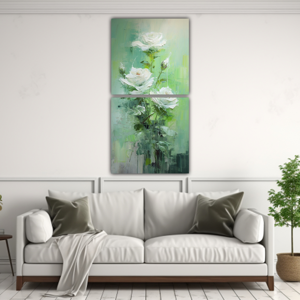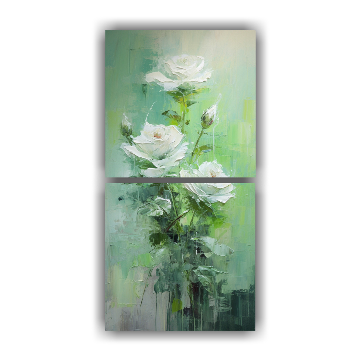 Este cuadro de rosas verdes en lienzo se vería perfecto en una sala de estar o comedor, combinando con muebles de tonos neutros como beige o blanco También puedes colocarlo en un dormitorio para darle un toque de elegancia y romanticismo ¡Deja volar tu imaginación y crea un ambiente único con este hermoso cuadro!