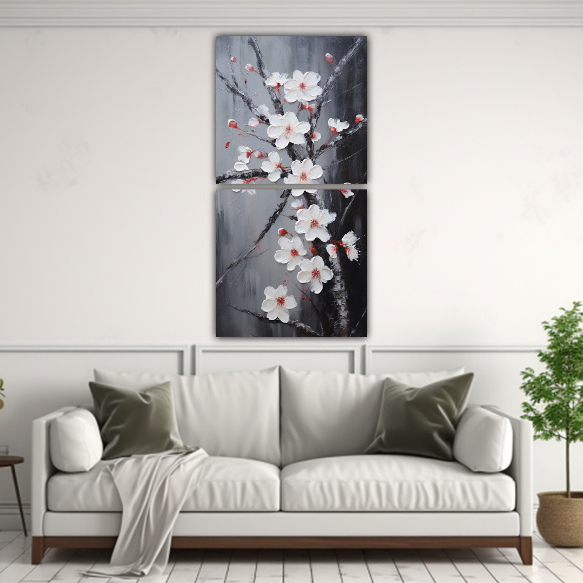 Este cuadro es ideal para decorar tu sala de estar o tu dormitorio Puedes colocarlo sobre un sofá o una cama, creando un punto focal en la habitación También puedes combinarlo con otros cuadros o elementos decorativos en tonos neutros para resaltar su belleza ¡Atrévete a darle un toque de elegancia a tus espacios con este cuadro de cerezo negro con flores de cerezo en la decoración!