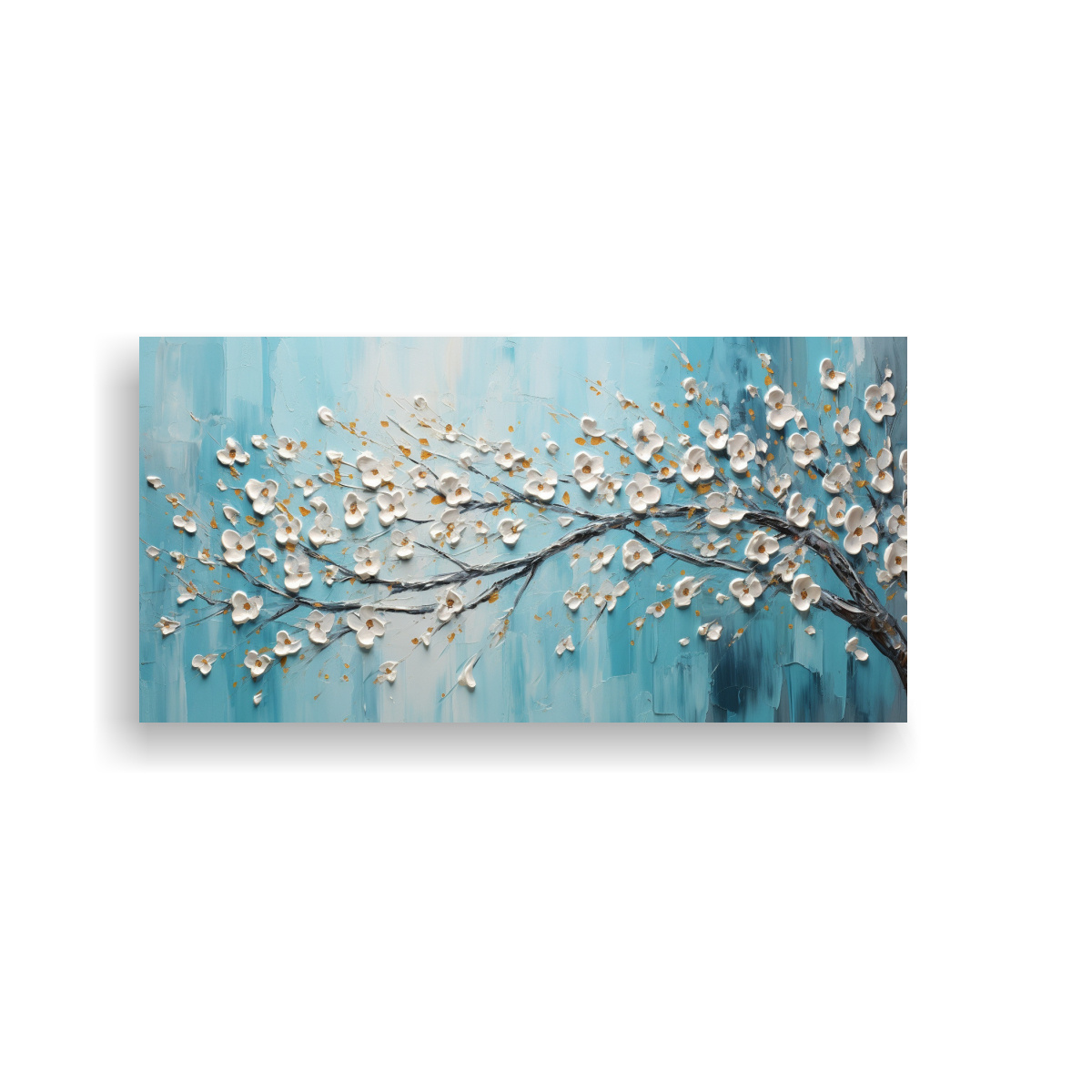 Pintura En Lienzo Moderna De Fantasía De Flores De Cerezo Turquesa En Arte De Pared