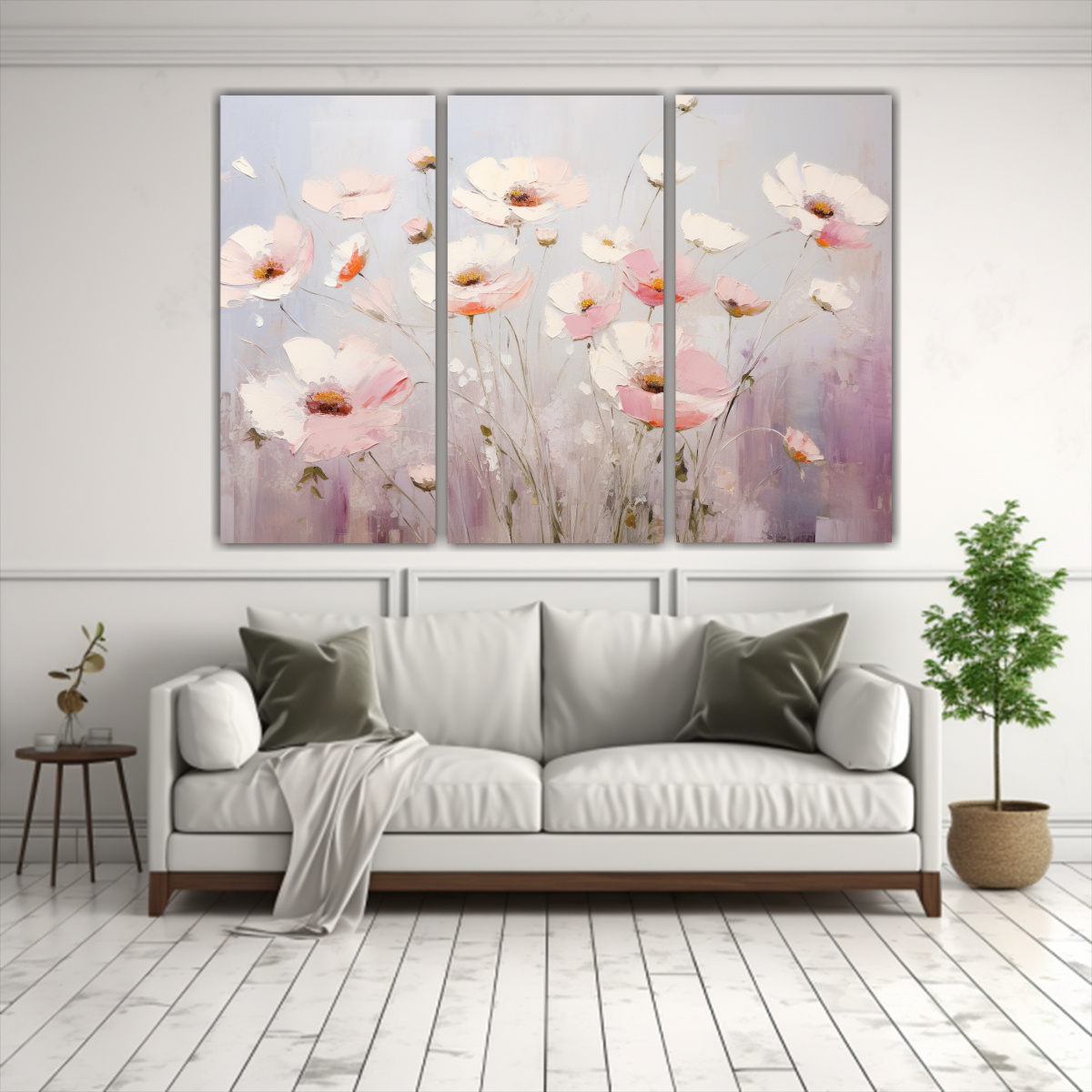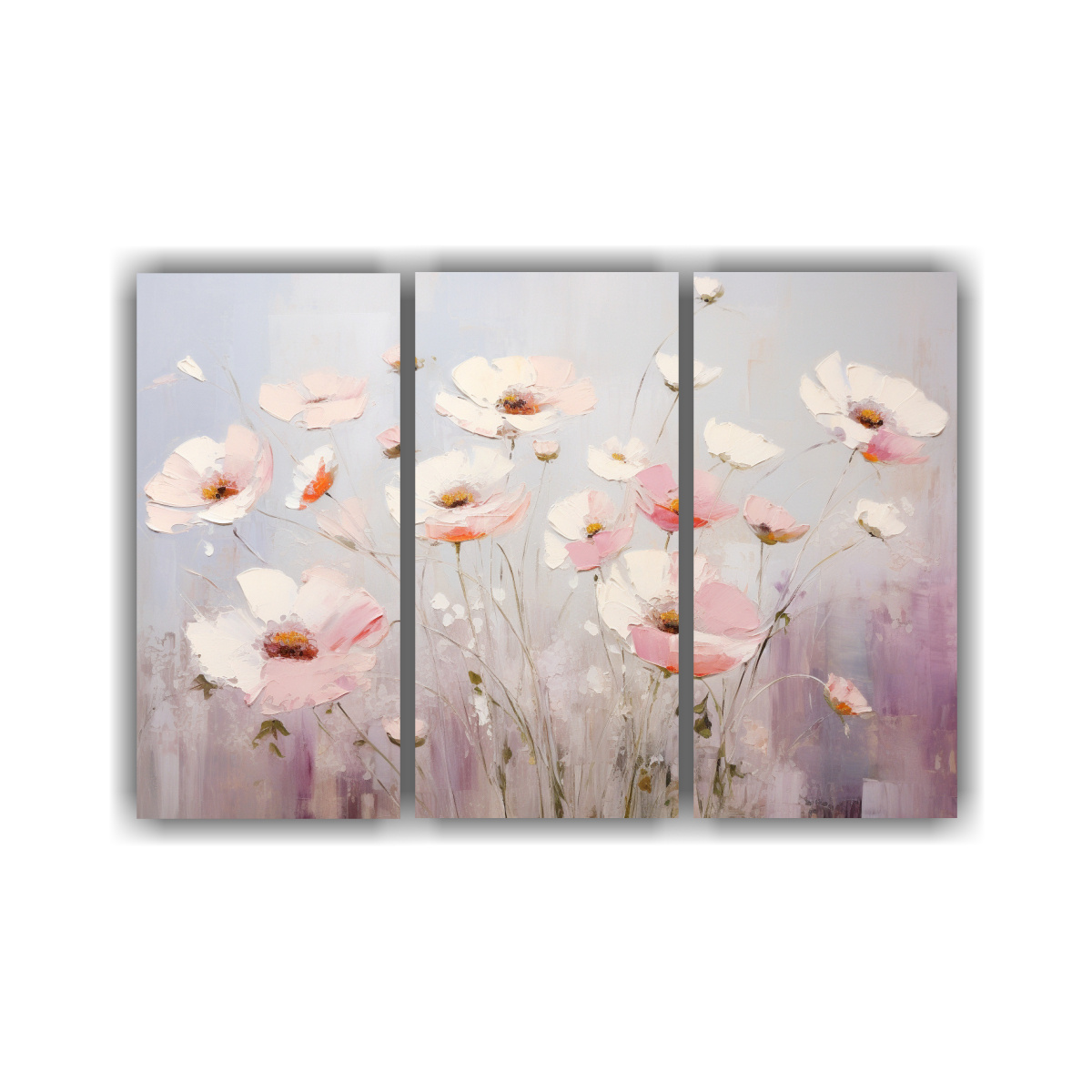 Decora tu hogar con este hermoso set de 3 cuadros en tonos blanco y rosa que aportarán un toque de elegancia y sofisticación a tu espacio Aprovecha los precios más económicos del mercado