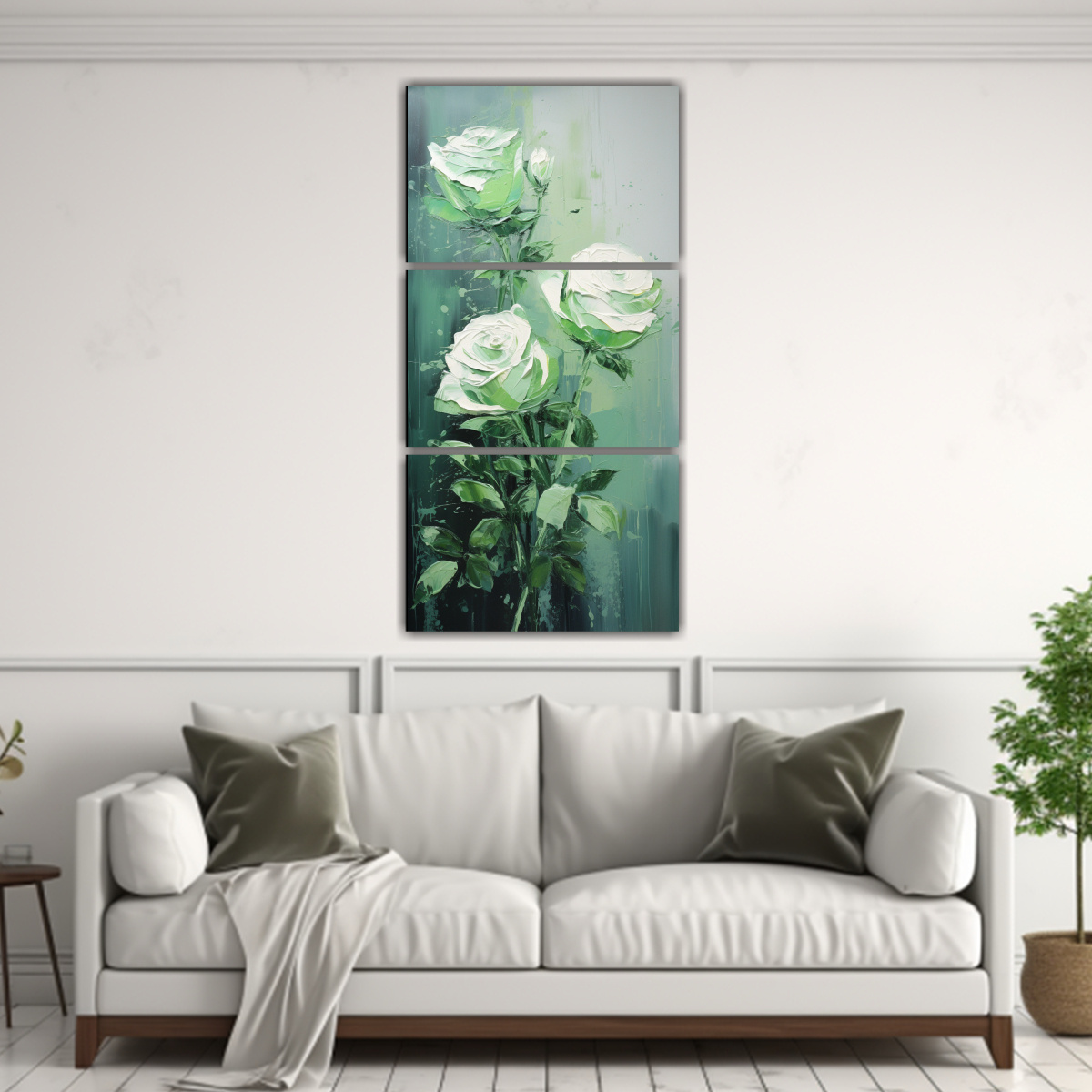 Pintura En Lienzo Movimiento Refinado A Rosas Verdes