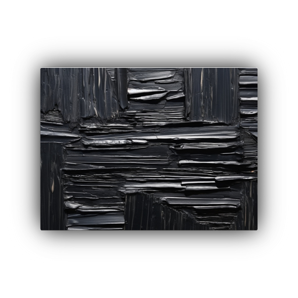 Coloca este cuadro negro inspirado por Soulages en un ambiente minimalista o contemporáneo para resaltar su elegancia Combínalo con muebles blancos y detalles en plata para crear un contraste sofisticado y vanguardista