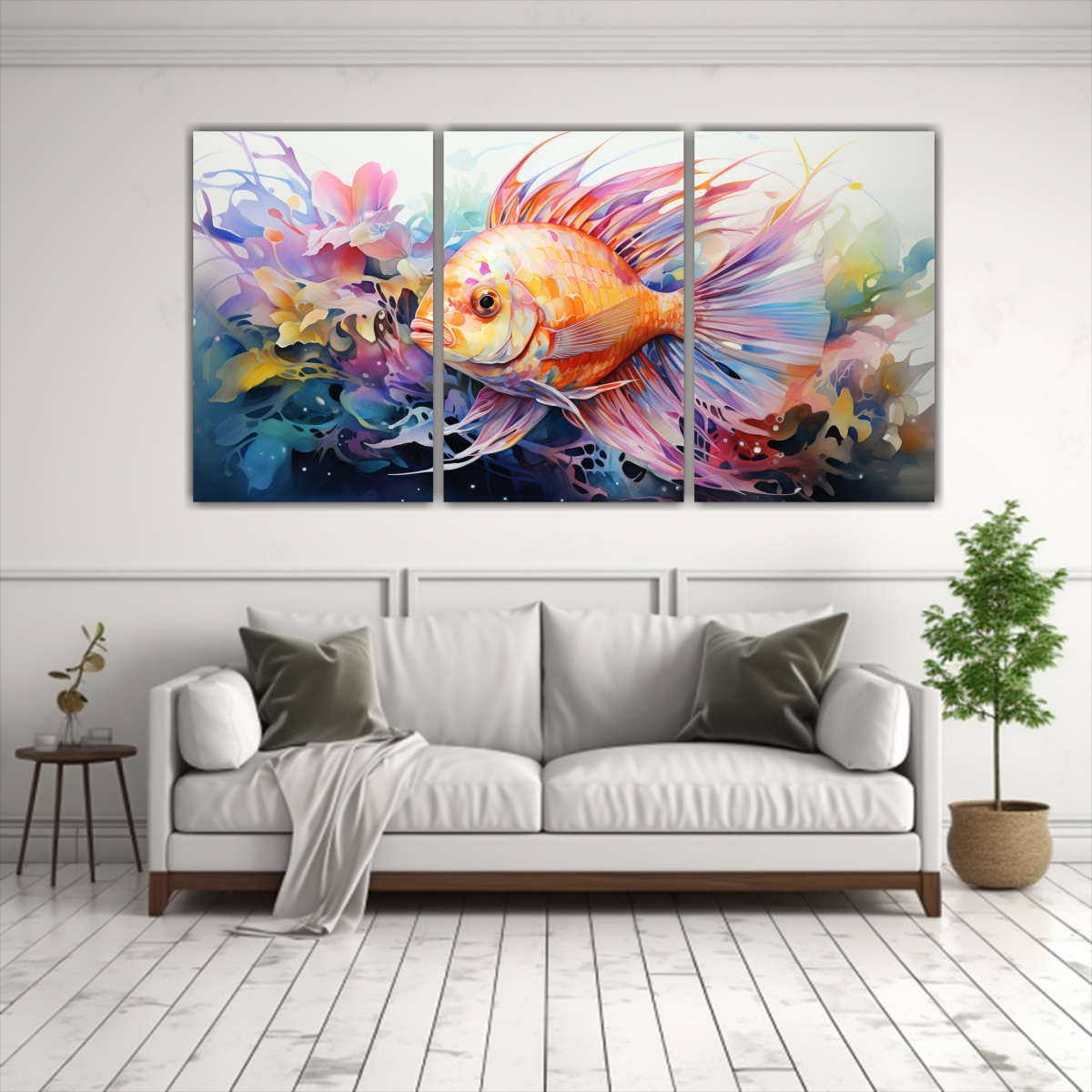 Este cuadro de pez disco acuarela colorida quedará perfecto en tu sala de estar, aportando un toque de frescura y sofisticación Combínalo con muebles en tonos neutros para resaltar su belleza