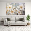 Pintura En Lienzo: Set 2 Telas En Bastidor A White AND Gold Colors Flowers