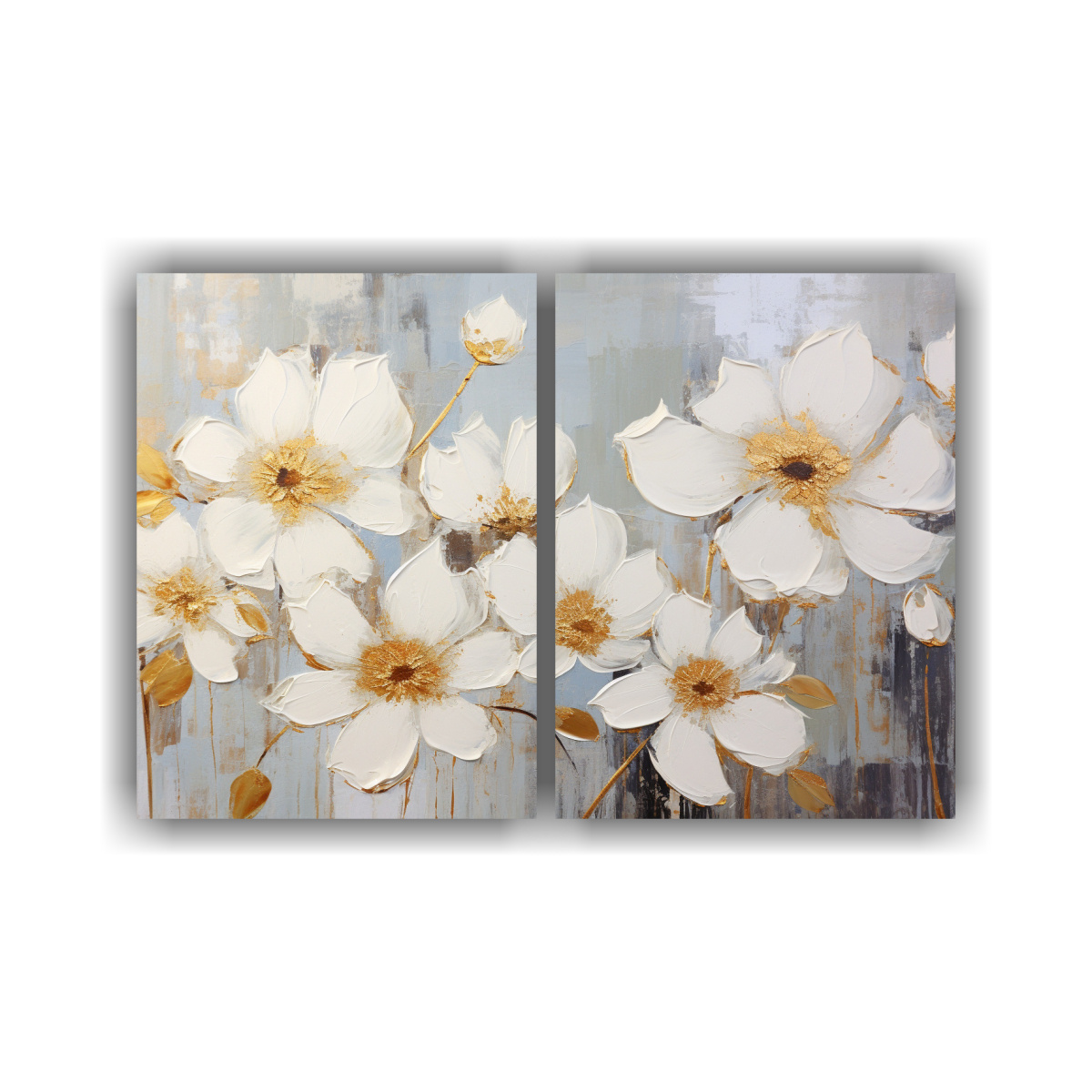 Transforma tus paredes con la espectacular luminosidad del Set 2 Telas en Bastidor A White AND Gold Colors flowers Descubre la mejor calidad y precios accesibles en cuadros decorativos impresos en tela de alta calidad Haz de tu hogar un lugar único