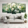 Pintura En Lienzo Set 5 Concepto Alta Resolucion Flores Verdes Y Doradas En La Decoración