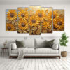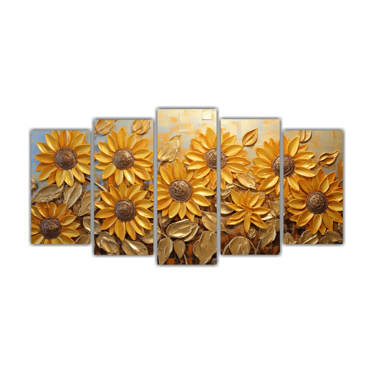 Pintura En Lienzo Set 5 Tonos Visión De Girasoles Dorados Estilo Decorativo