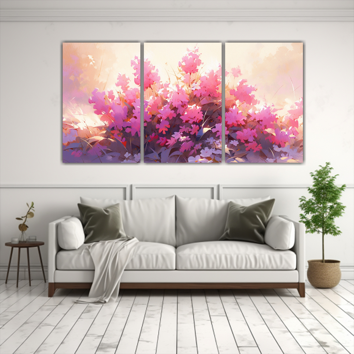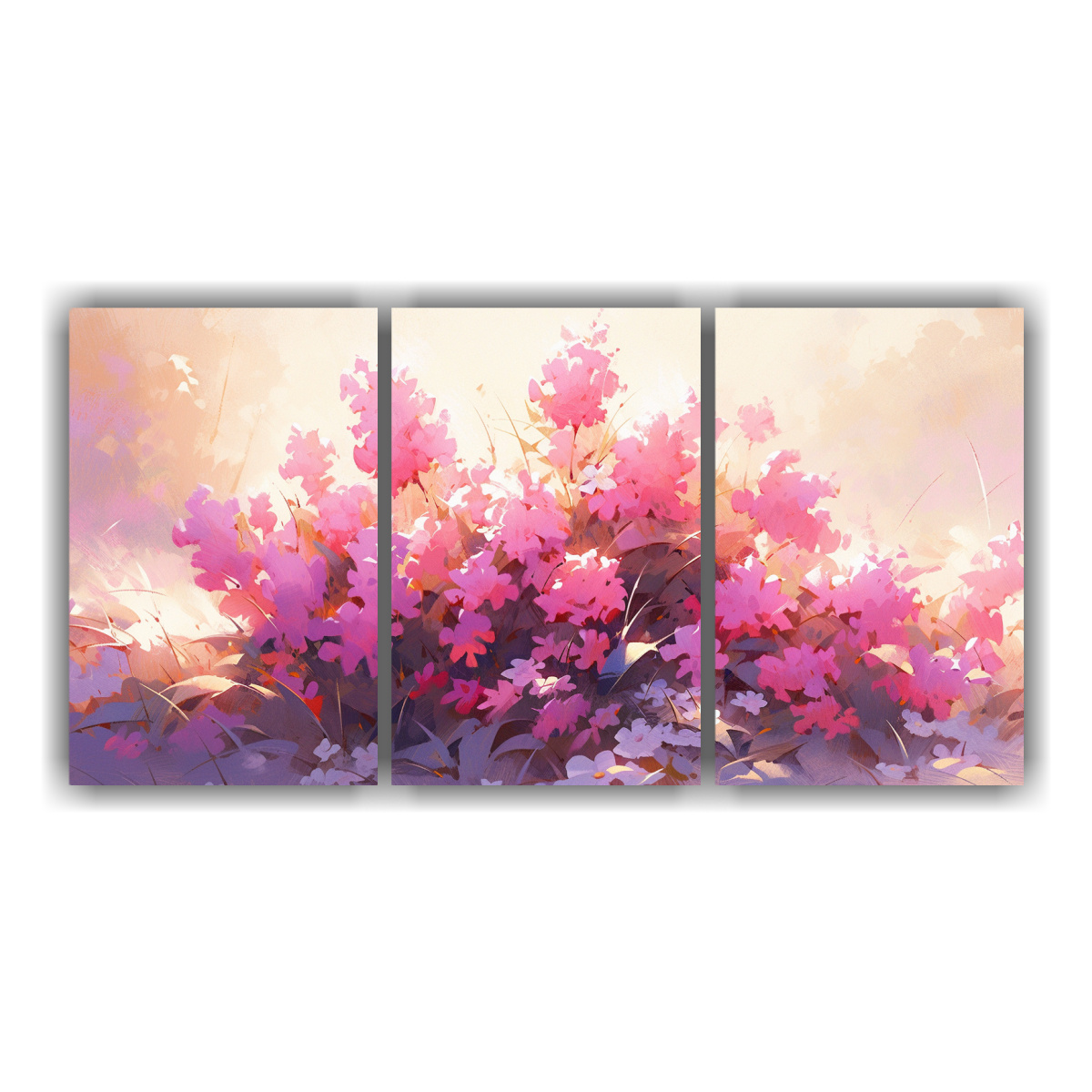Pintura En Lienzo Tres Cuadros Expresión Exclusivo En Tonos Magenta Estilo Decorativo