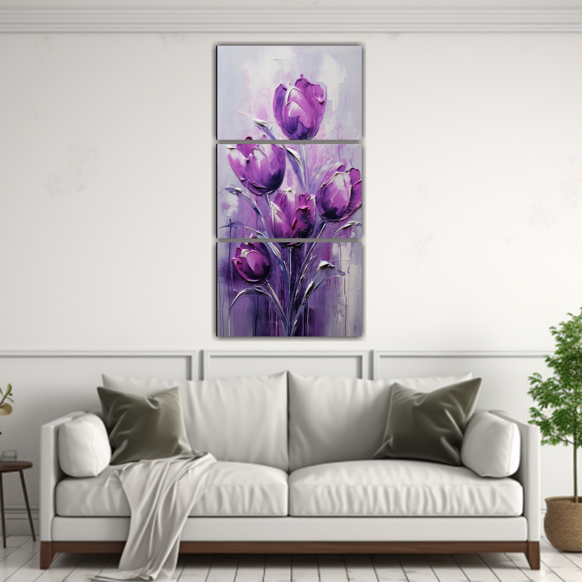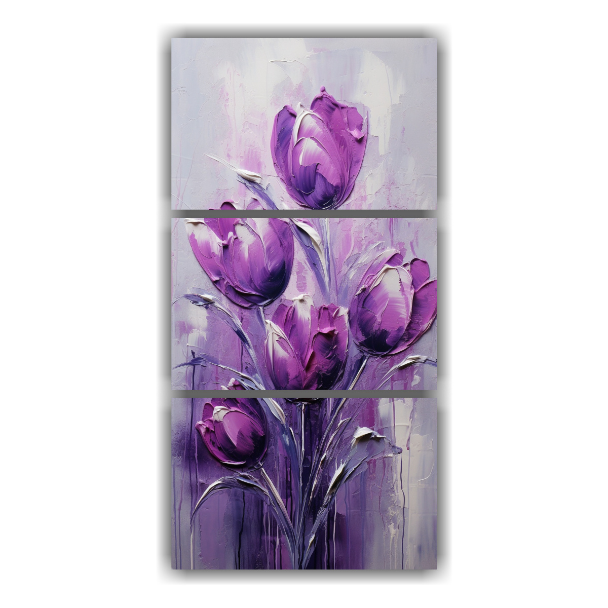 Pintura En Lienzo Tríptico Concepto Llamativo De Tulipanes Morados