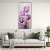 Pintura En Lienzo Vertical De Tulipanes Púrpuras En Armonía Cromática